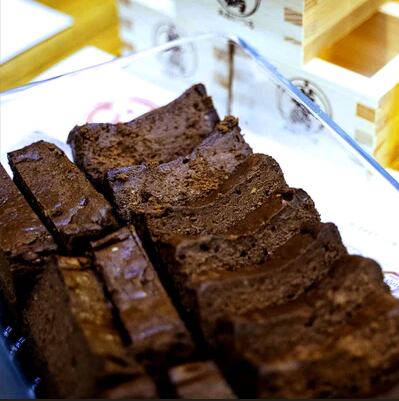 日本酒ガトーショコラは、ガトーショコラの中に日本酒をたっぷり入れており、口に入れた瞬間にフワッと日本酒の豊潤な香りが漂います。